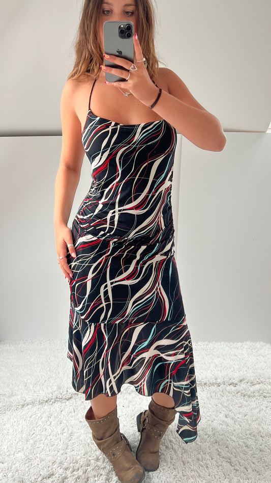 00s black silk beaded midi dress- size S