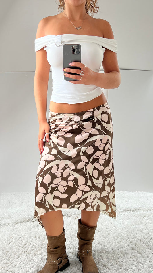 00s brown asymmetrical midi skirt- size M
