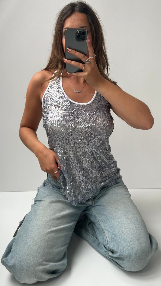 00s silver sequin tank top- size M