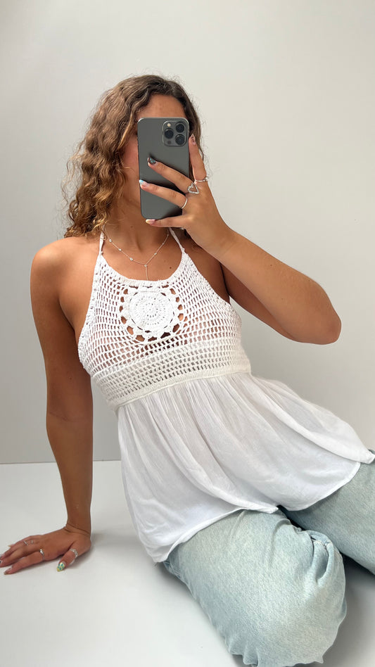 00s white crochet babydoll cami- size L