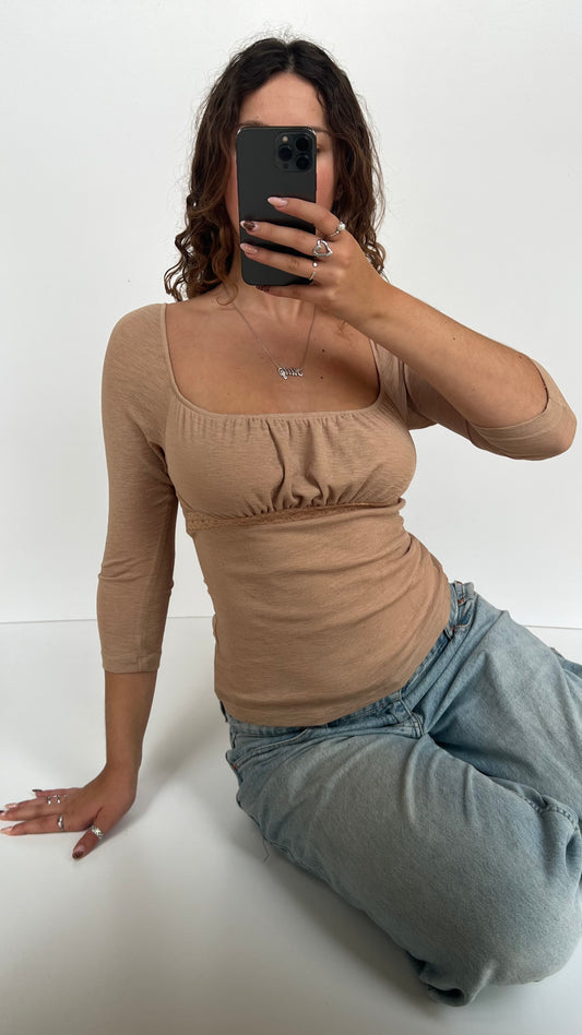 00s tan milkmaid long sleeve top- size M