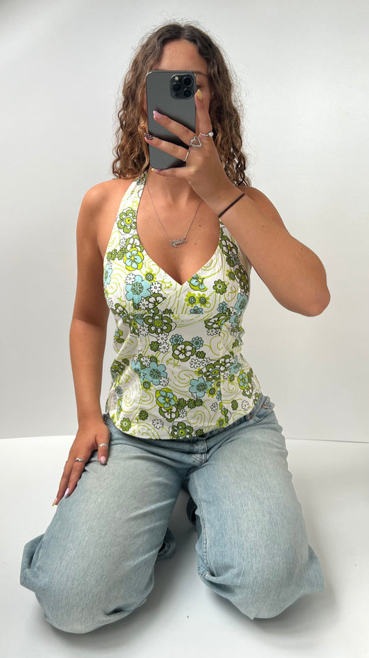 00s white green halter cami- size M