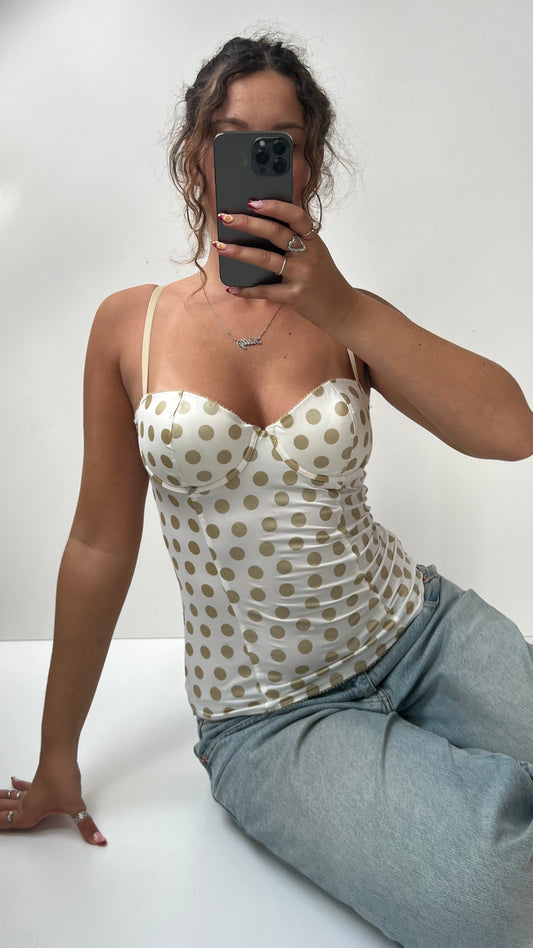 00s white gold polka dot corset- size L