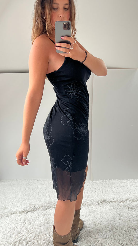 00s black mesh floral dress- size M