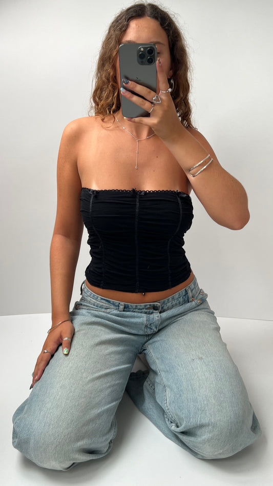 00s black mesh floral corset cami- size S