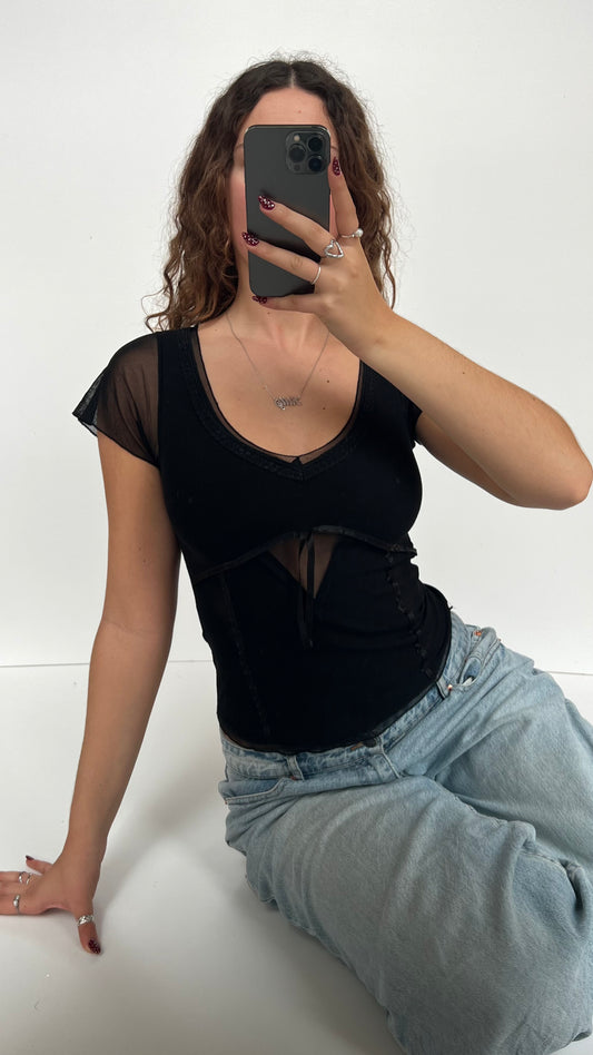 Sold out00s black mesh babydoll top- size S