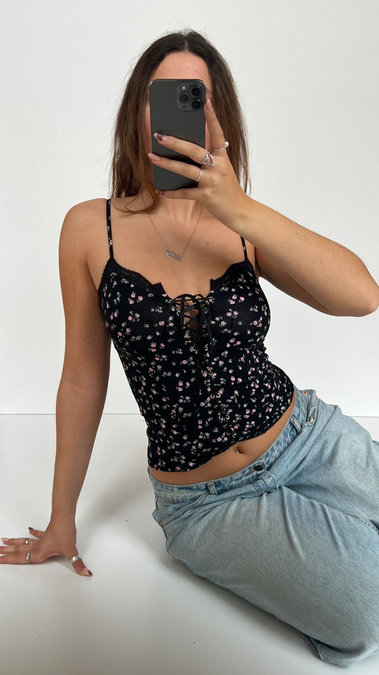 00s black floral cami- size S