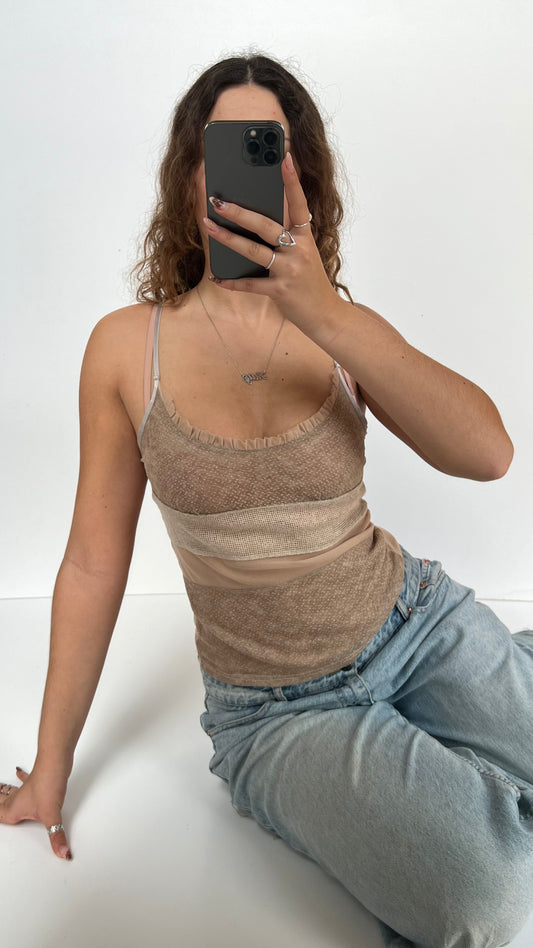 00s beige mesh patchwork cami- size S