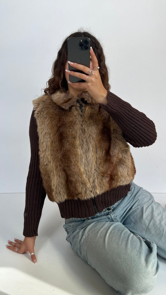 00s brown faux fur jacket- size L