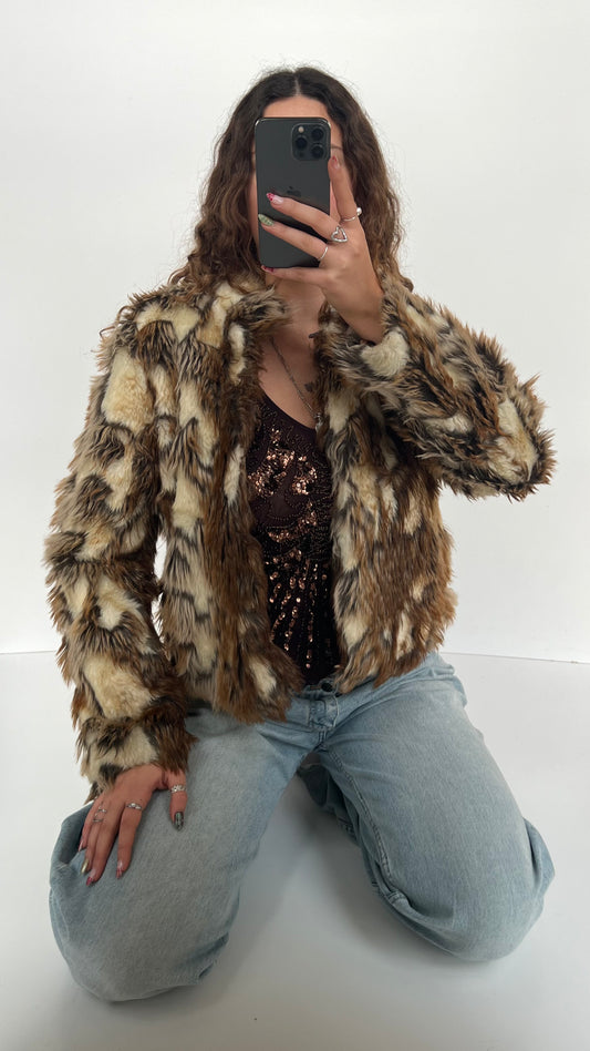 00s brown cream fur jacket- size m