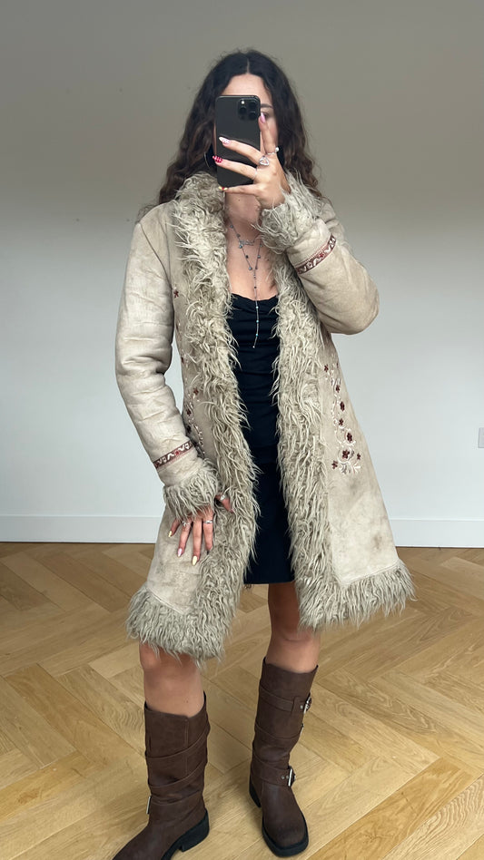 00s cream floral afghan coat- size M