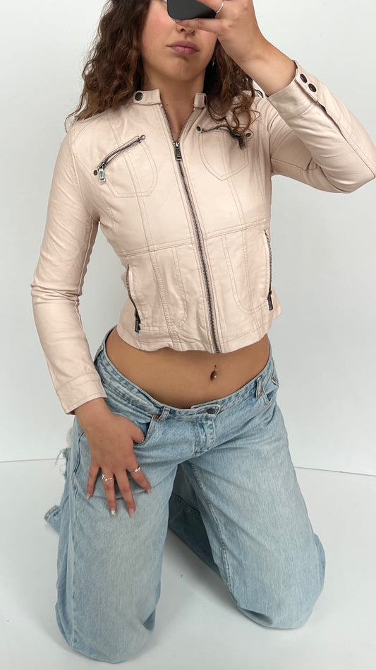 00s baby pink leather jacket- size XS