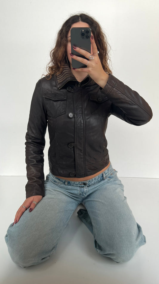 Sold out00s brown leather jacket- size S