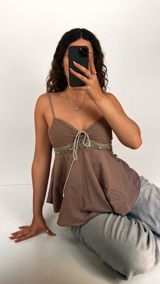 00s brown crochet cami- size M