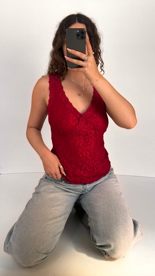 Sold out00s red lace tank top- size L