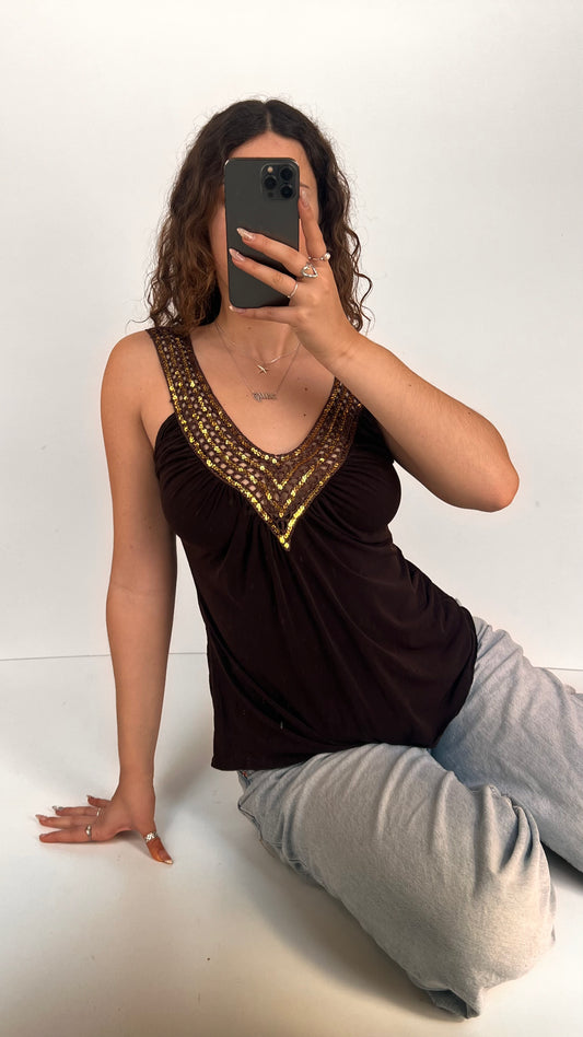 00s brown sequin cami- size L
