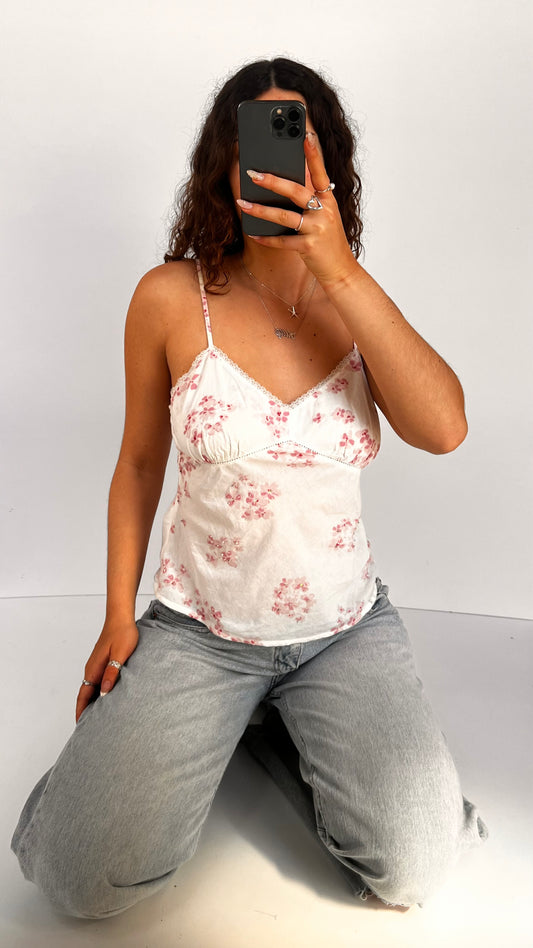 Sold out00s white pink floral cami- size M