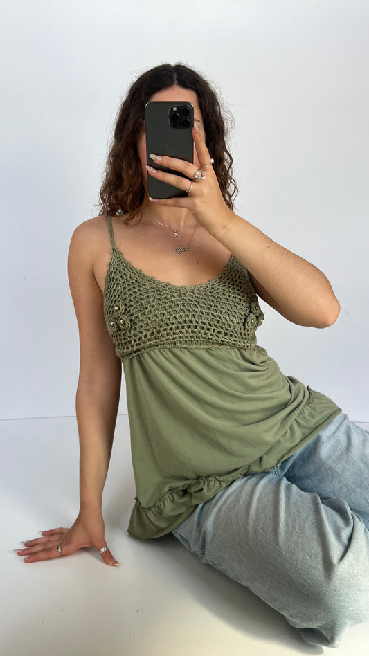 00s green crochet babydoll cami- size L
