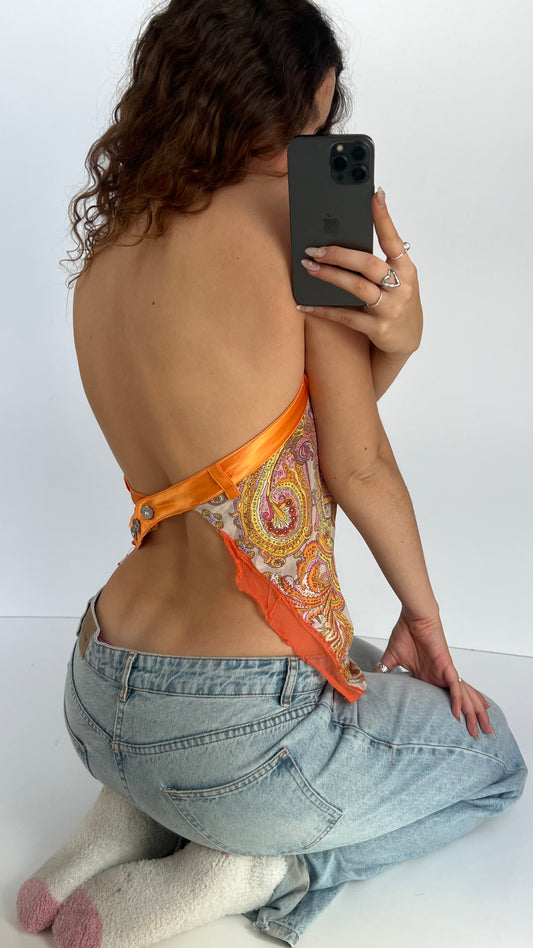 00s orange paisley backless cami- size S/M