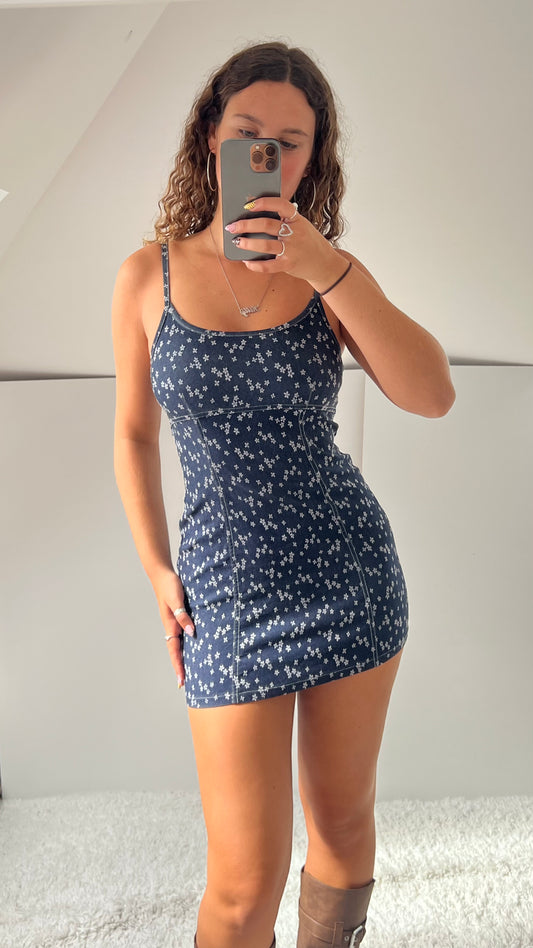 00s denim floral mini dress- size S