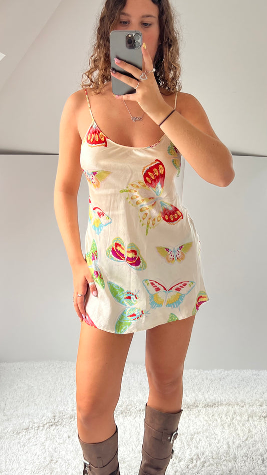 00s cream butterfly slip dress- size S