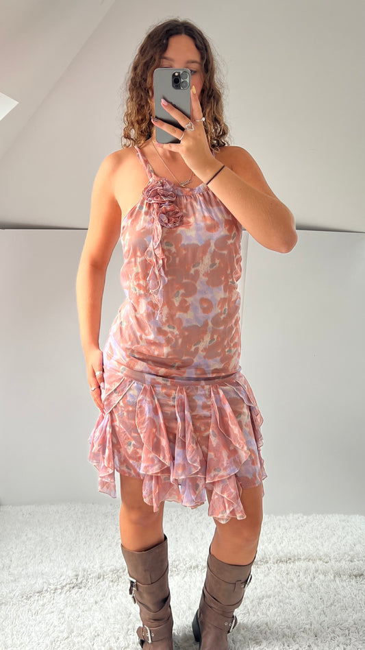 00s pink blue mesh midi dress- size M