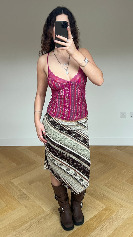 00s green brown mesh midi skirt- size S