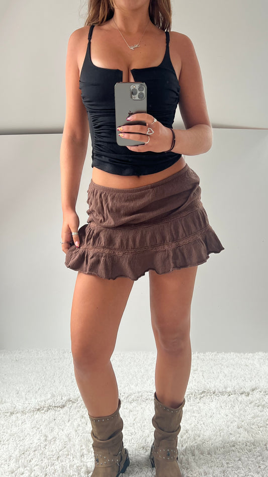 00s brown ruffle mini skirt- size M
