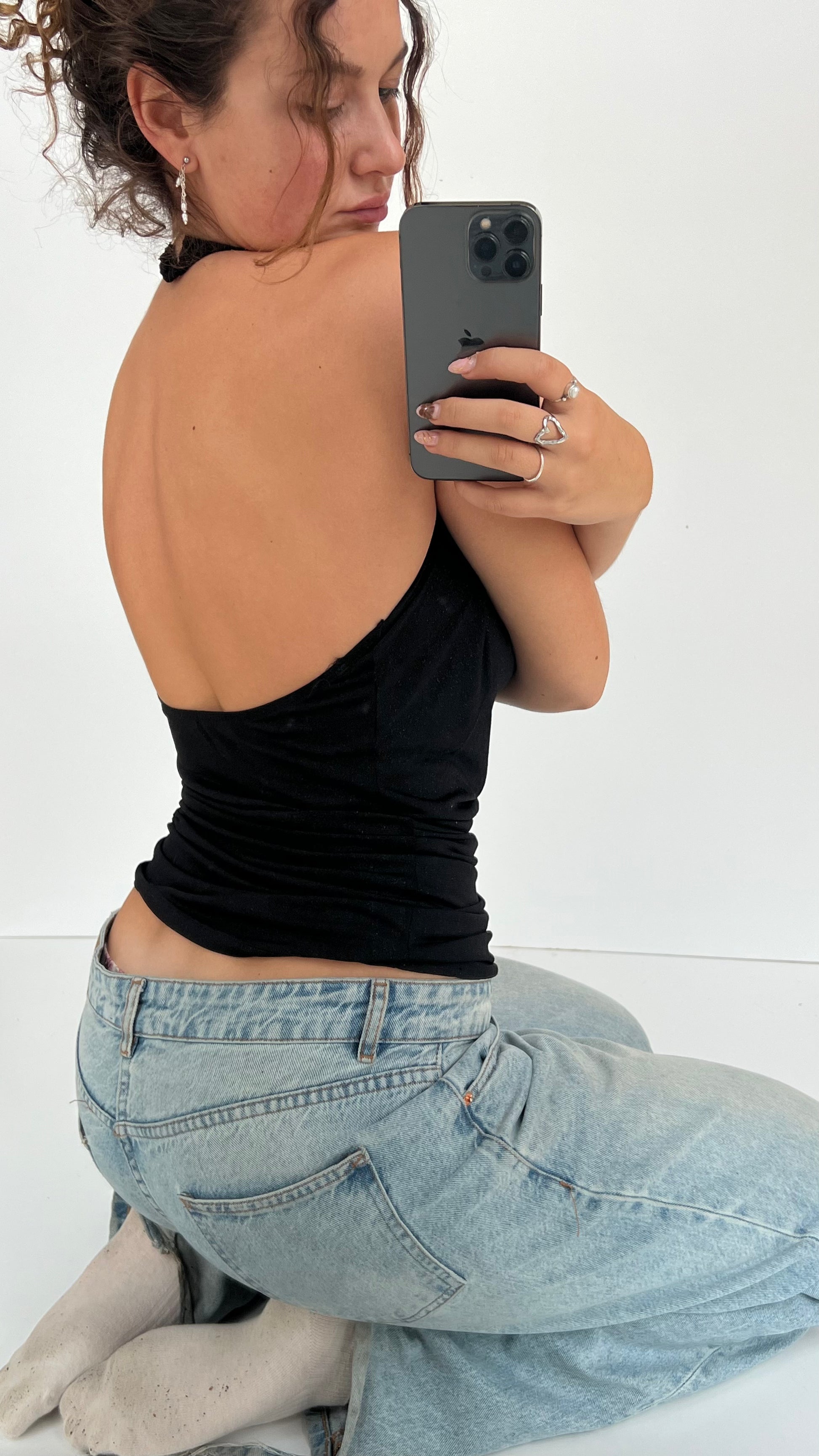 Insane black cowl neck hater top which can be worn as a mini dress or top! Stretchy.