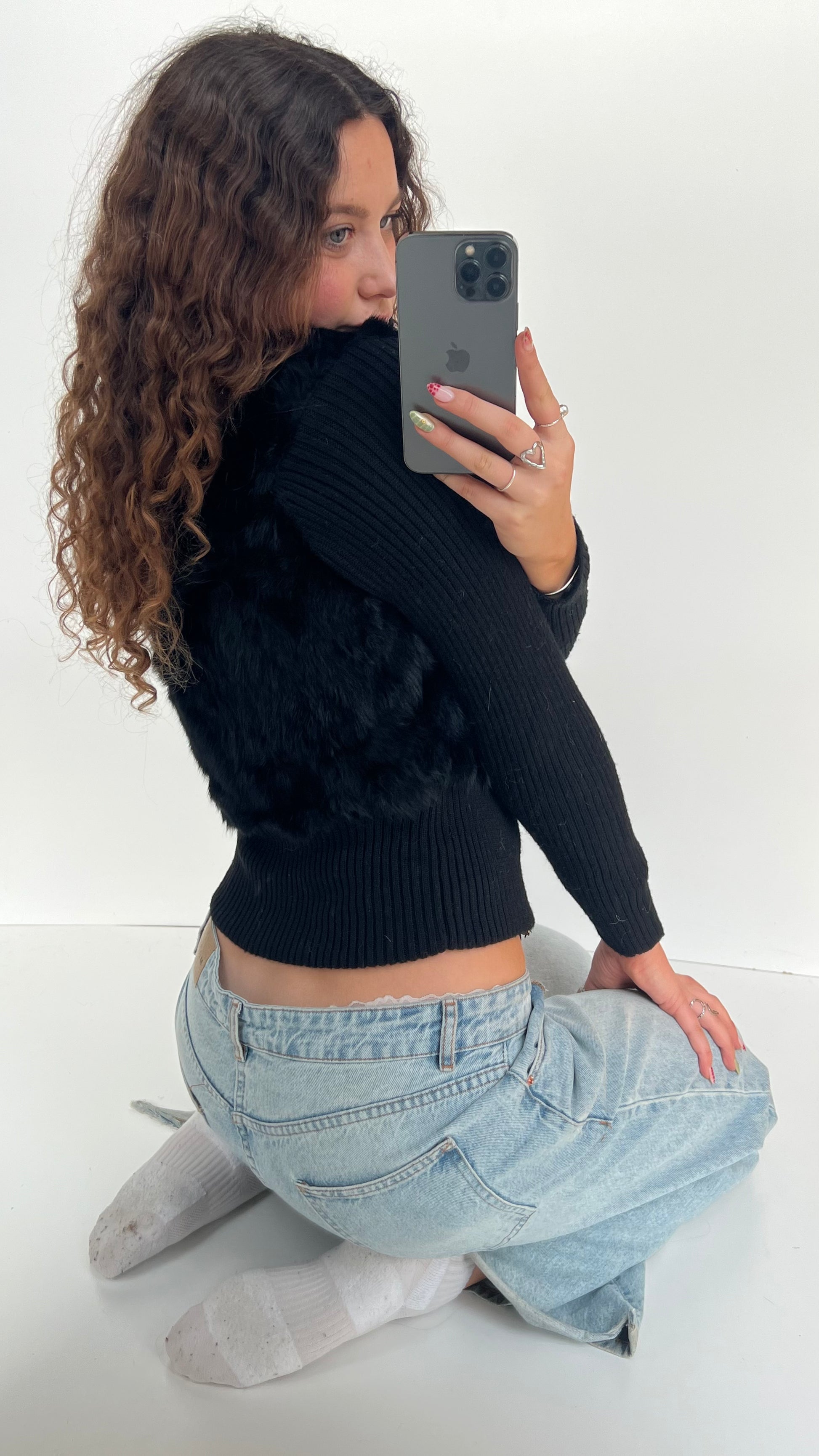 Real 100% rabbit fur black zip up jumper. Stretchy.