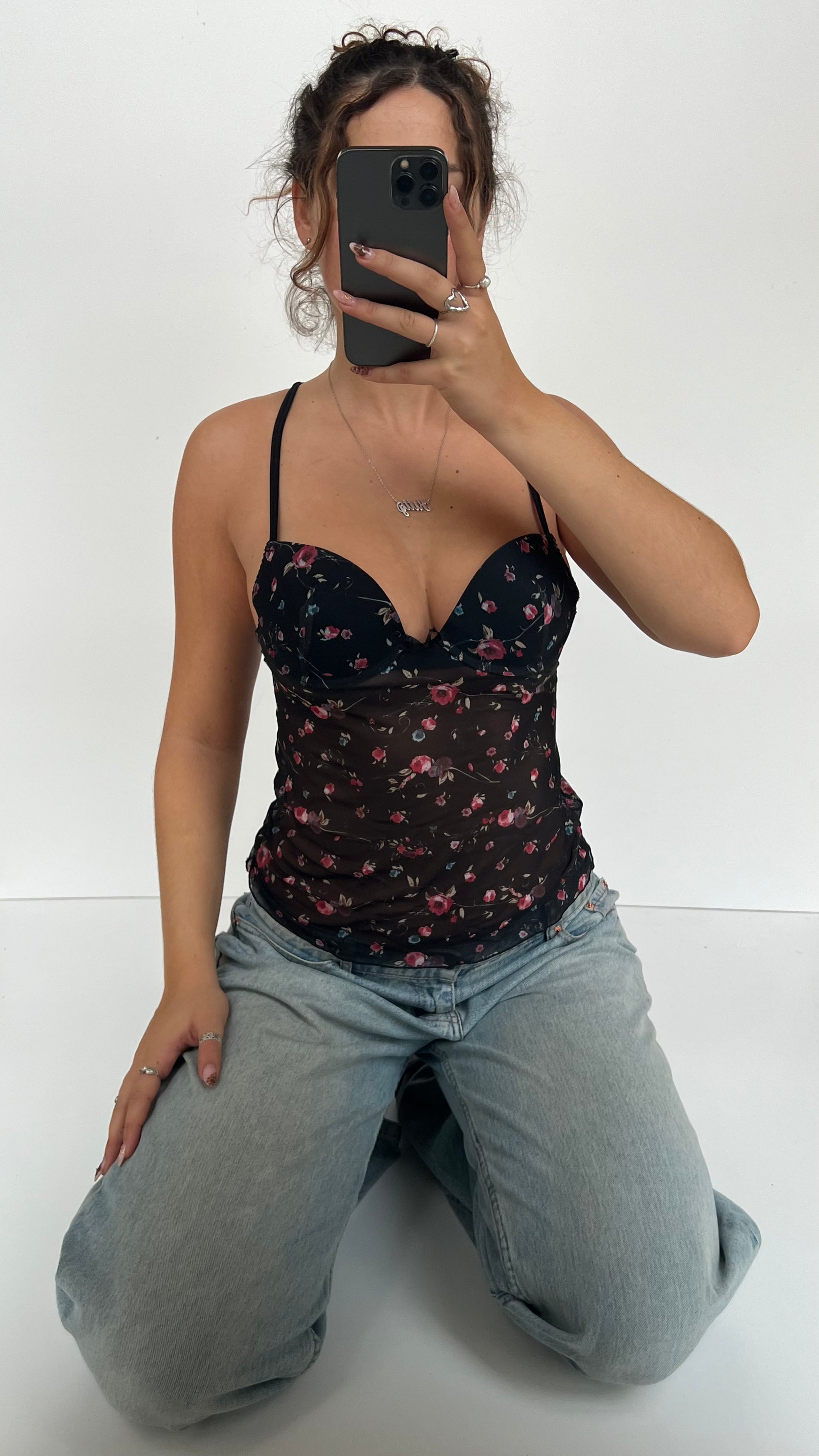 00s black mesh floral corset cami- size S
