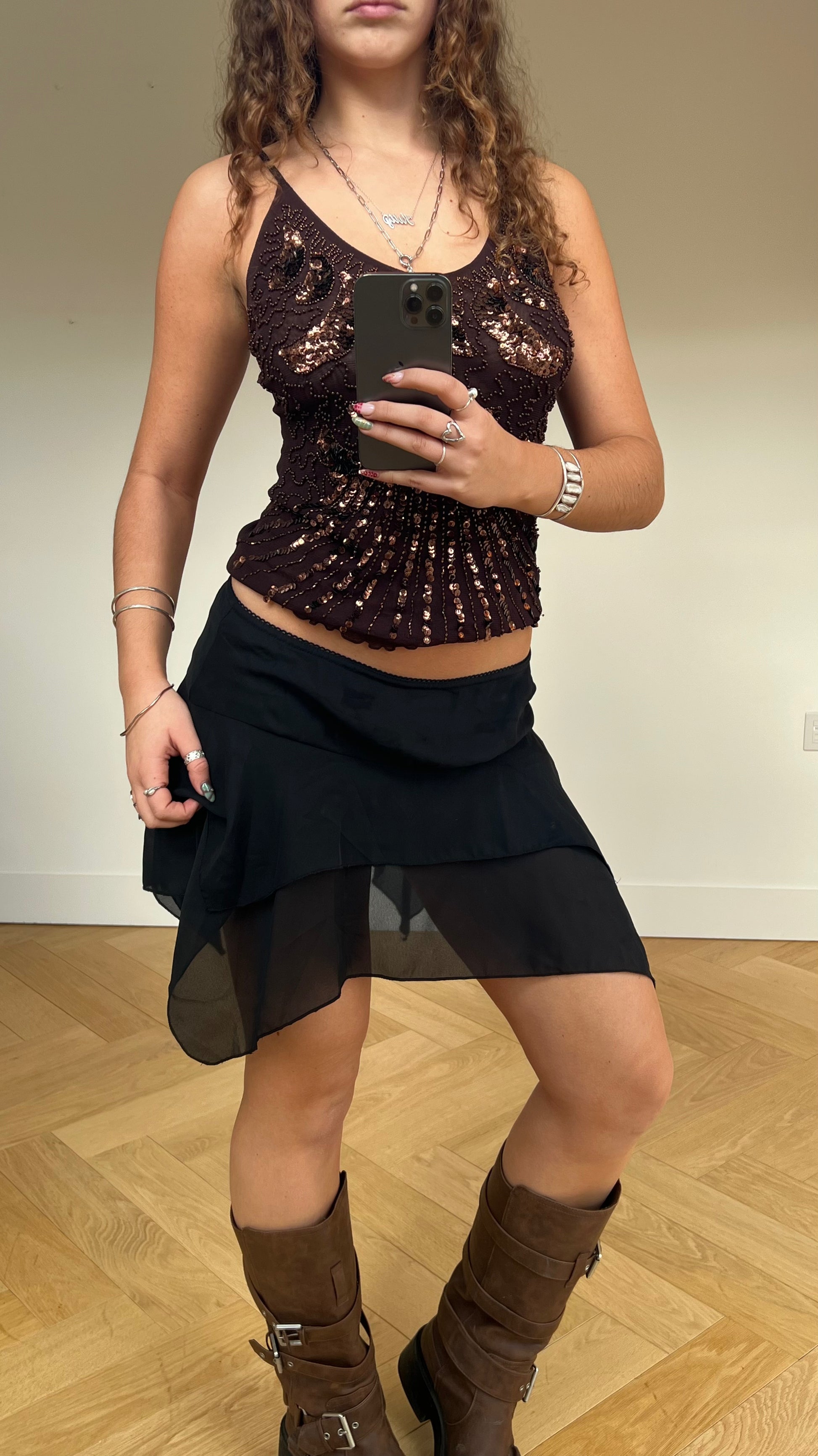 00s black mesh mini skirt- size M