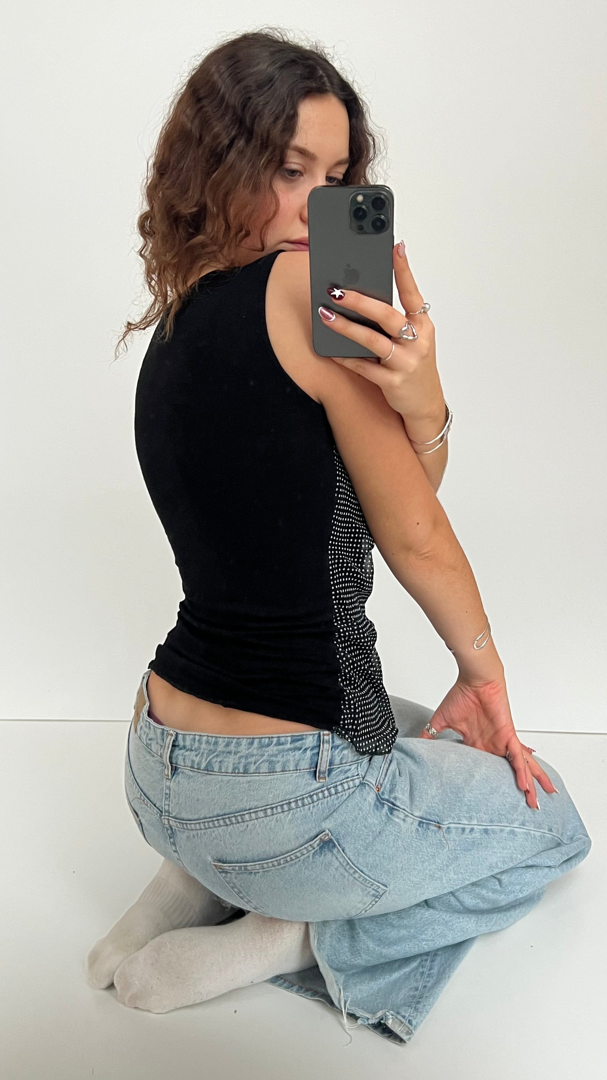 00s black polka dot top- size M