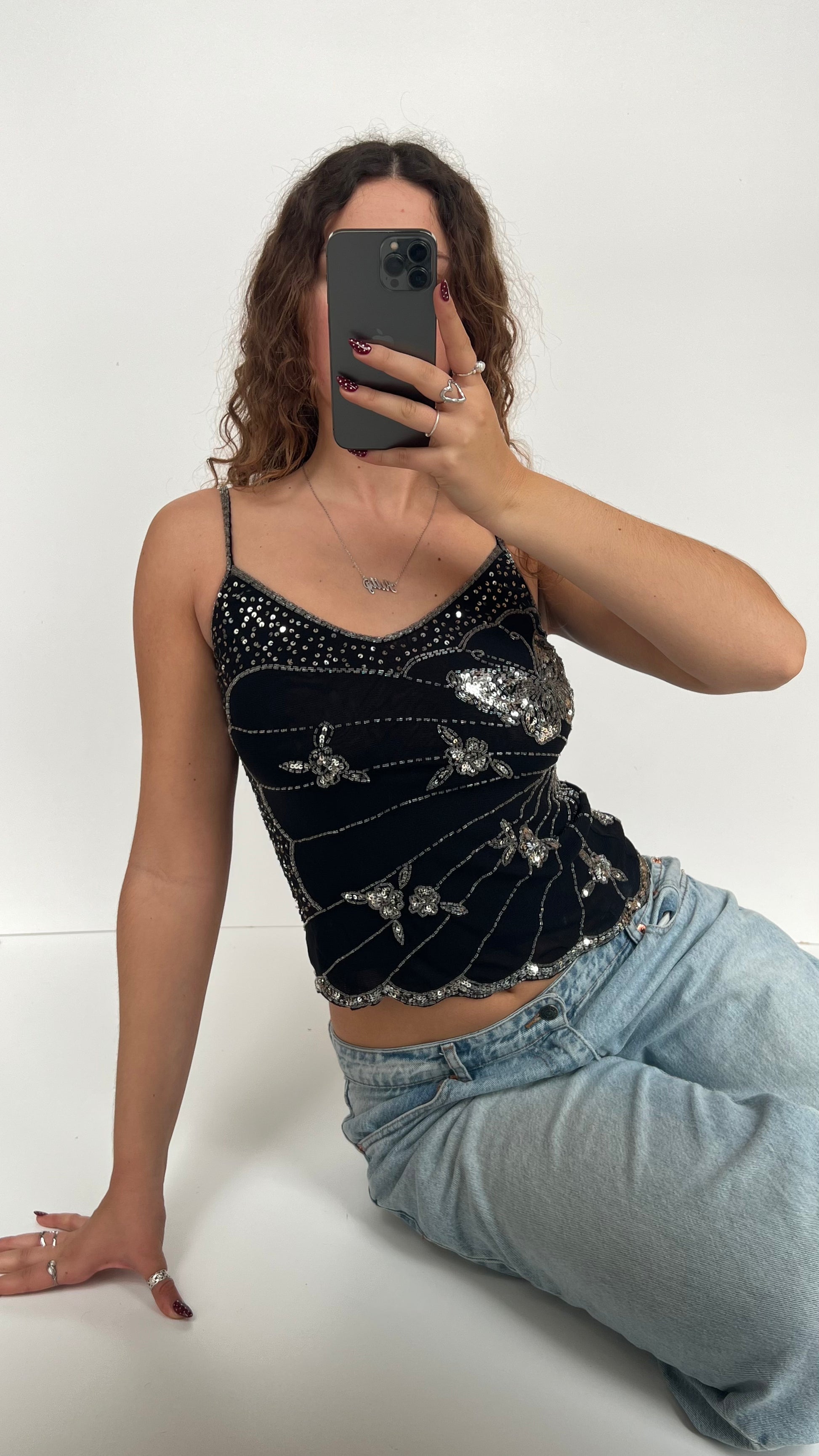00s black sequin butterfly cami- size S
