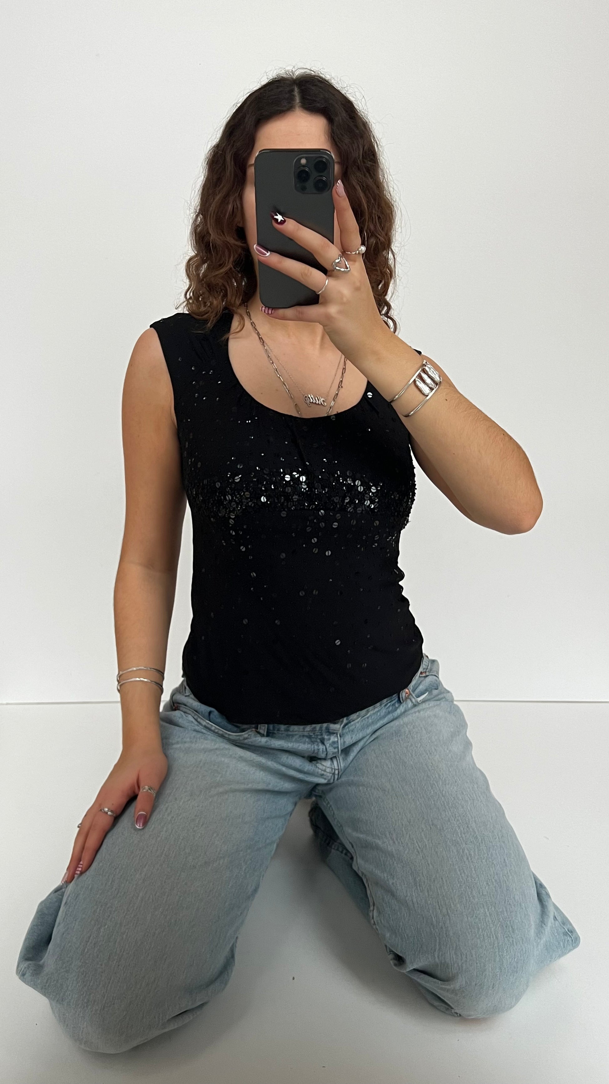 00s black sequin top- size S