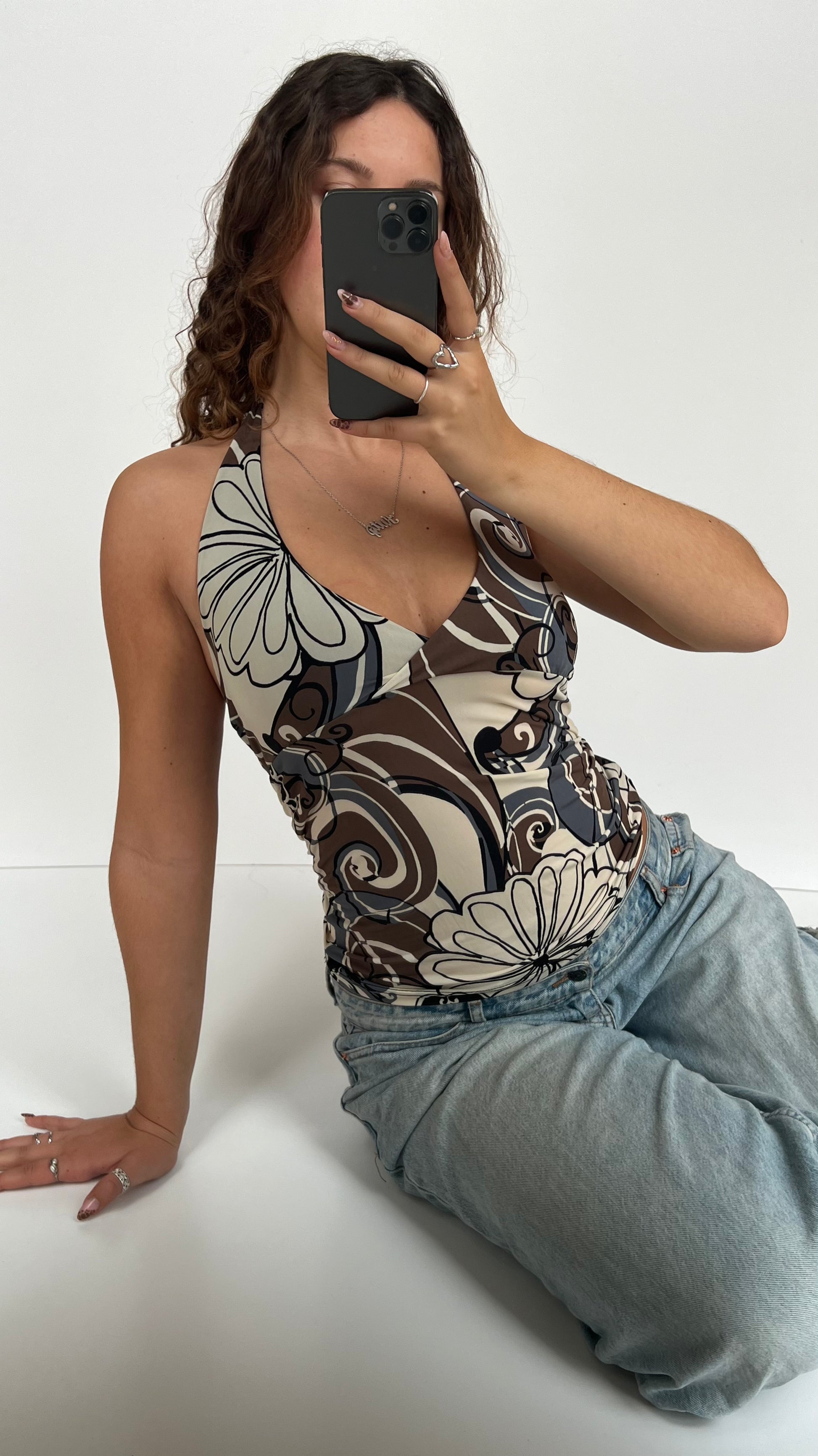 00s brown floral halter cami- size S