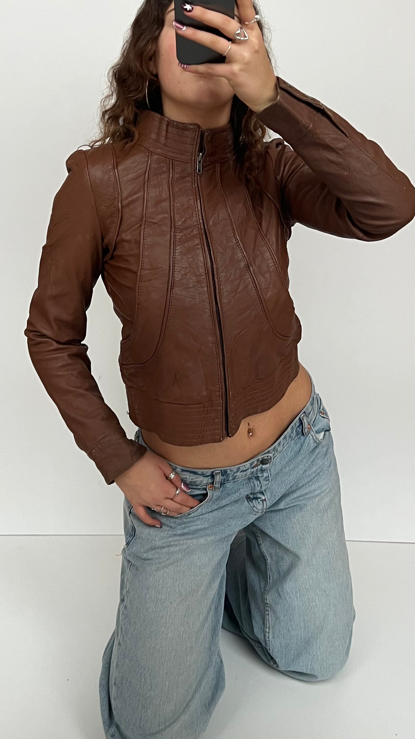 00s brown leather jacket- size S