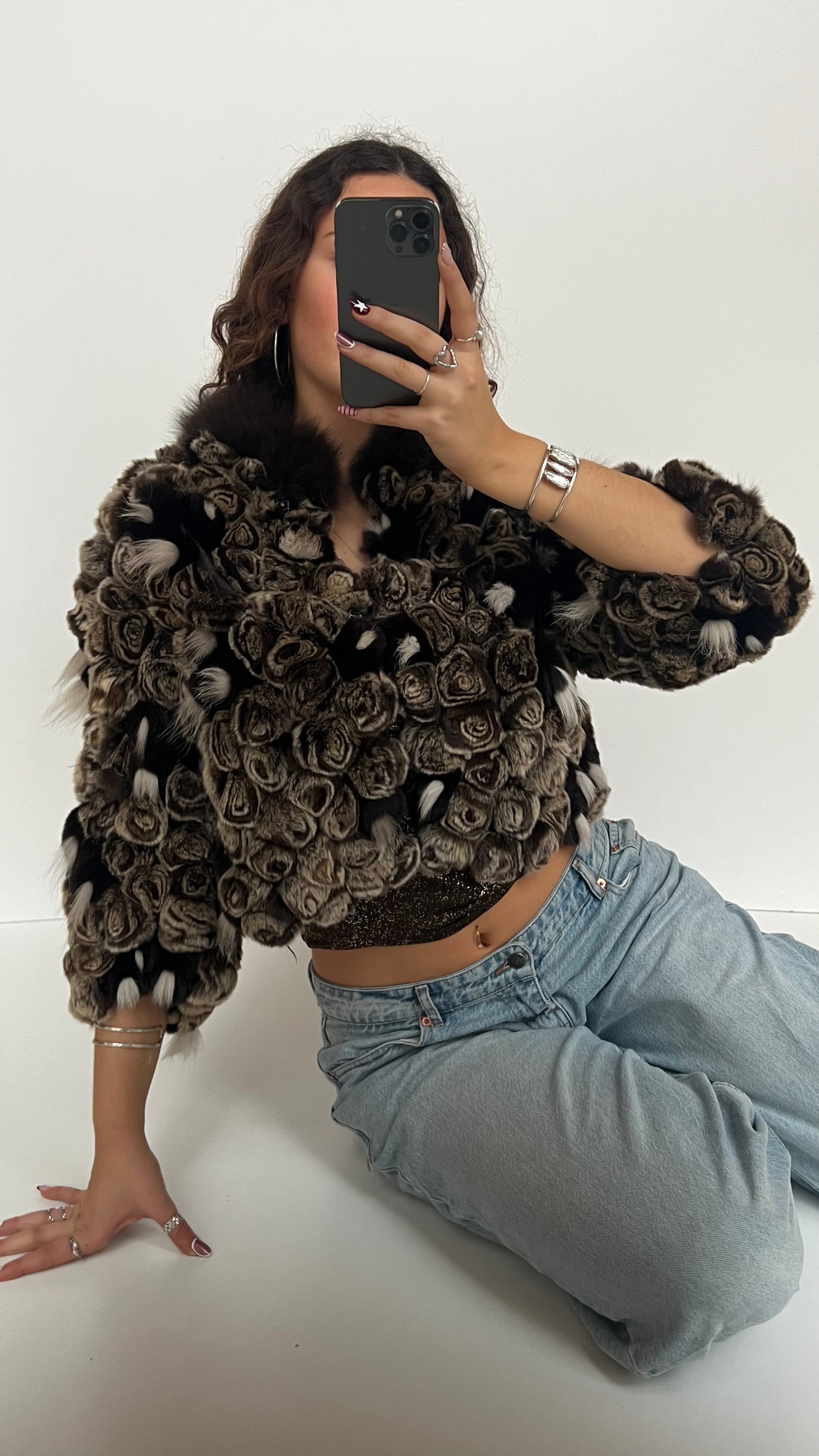 100% genuine rabbit fur tufted textured brown fur jacket.