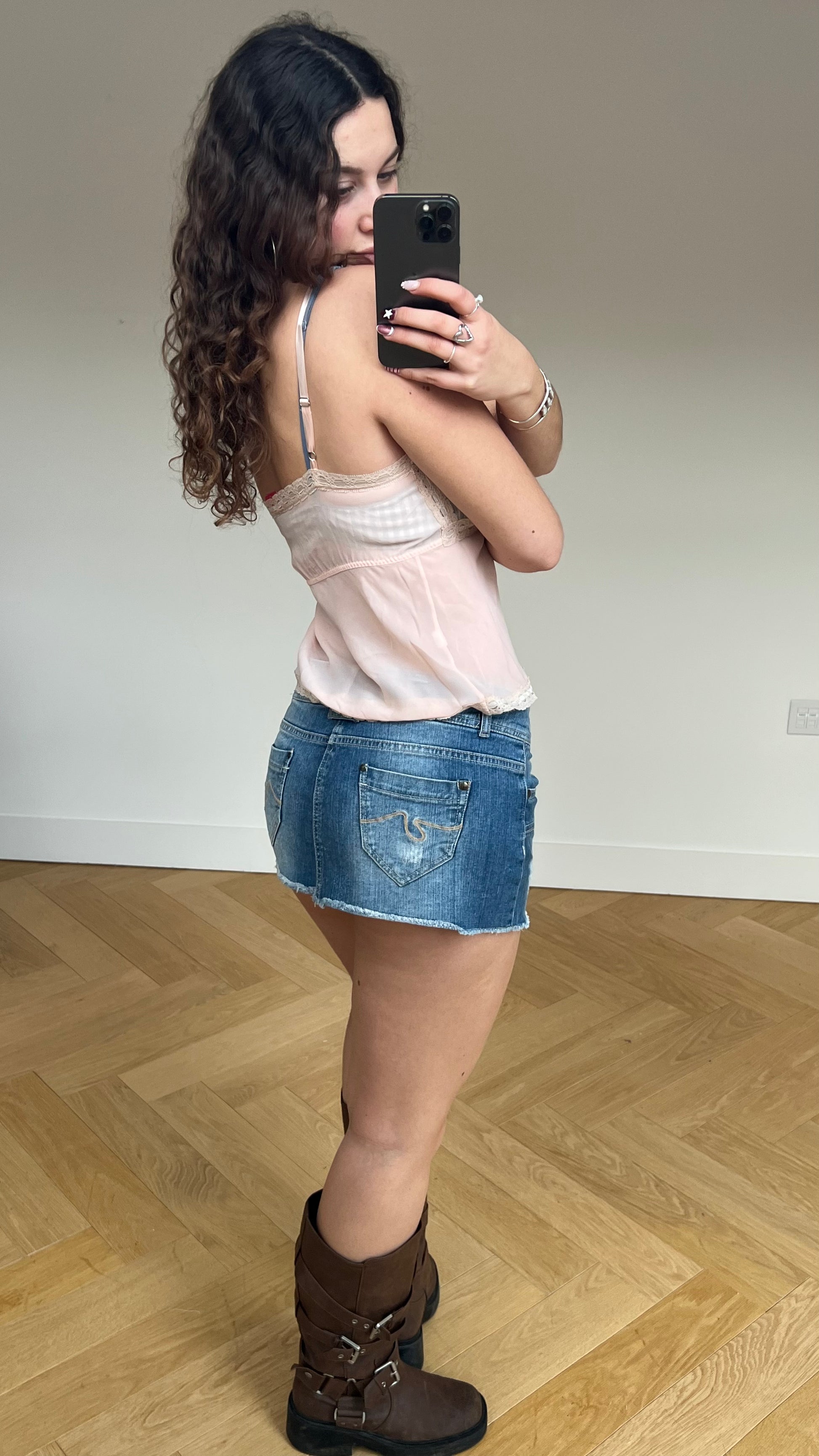 00s denim micro mini skirt- size M
