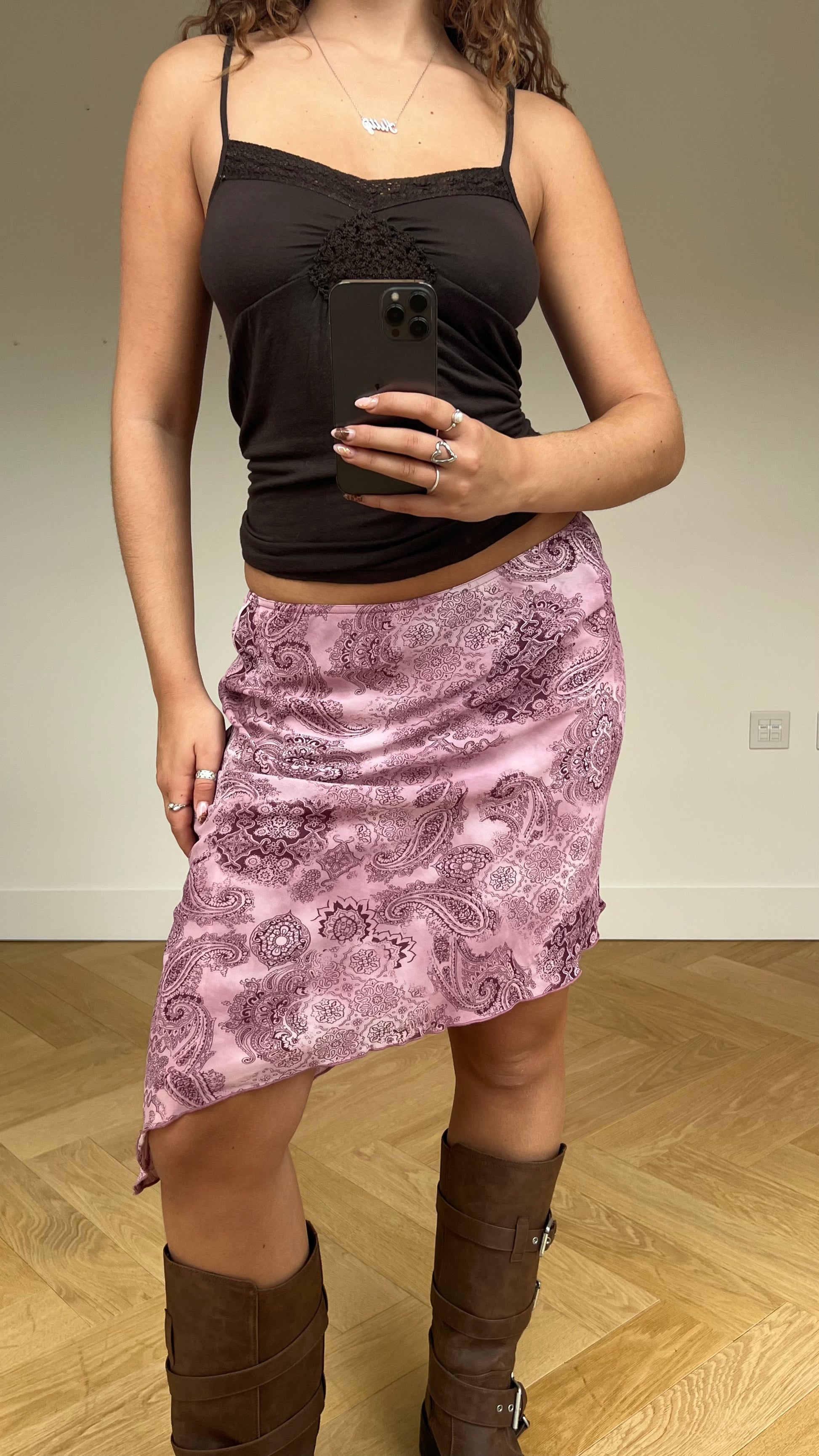 00s pink paisley midi skirt- size S
